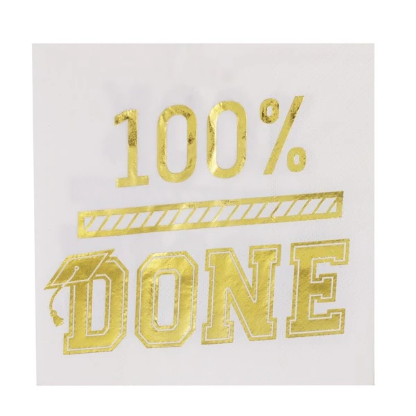 Our two-sided black, silver, and gold 100% Done Grad Lunch Napkins are perfect for your Graduation celebrations. Sold in a pack of 16 napkins. Please order in increments of 1 pack.