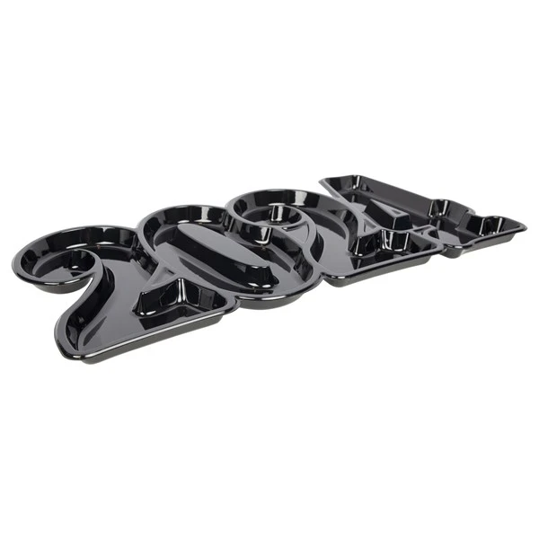 Cheers to a tasteful New Year’s Eve party with our black plastic 2024 Tray. Designed for a stylish celebration, this 9 1/2″ x 18 1/2″ tray features compartments shaped as the numbers 2, 0, 2, and 4, perfect for snacks & treats. Create a festive spread and impress your guests. Hand-wash only. Sold by the individual tray. Please order in increments of 1 tray.