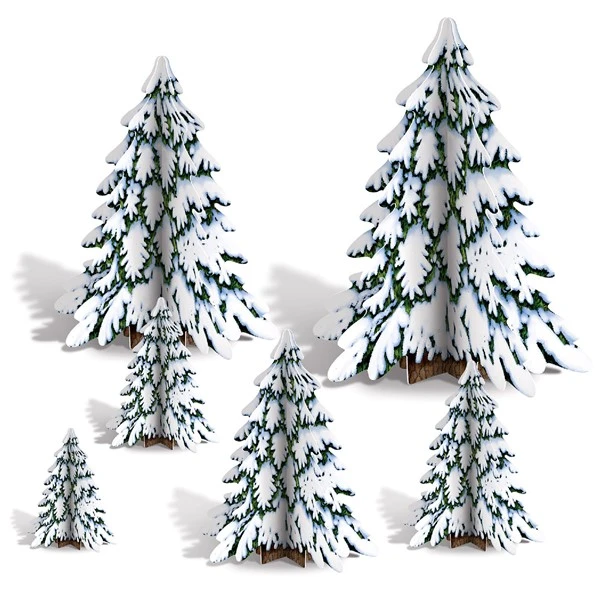 Our 3D Winter Pine Trees Centerpiece makes a beautiful holiday table decoration for buffets and dinners. The 6-piece snow-covered trees decoration range in size from 4″ to 12 1/2″. Mix and match with your winter wonderland and holiday decor. Sold in a pack of 6 pieces. Please order in increments of 1 pack.