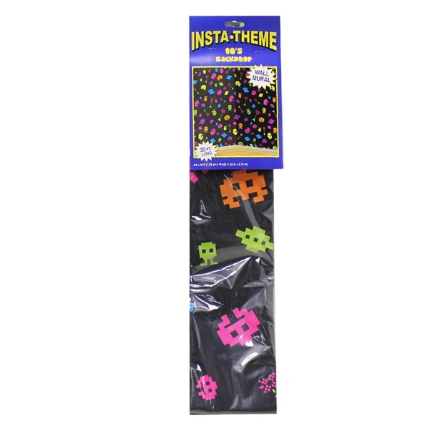 Go back in time to when things were brightly colored and totally rad! Decorate for your 80’s theme party with our awesome 80’s Arcade Scene Room Roll. This 4′ x 30′ plastic backdrop is sure to take your party-goers back in time. Make sure to have them dress up 80’s style and pose in front of this 80’s Scene Setter for totally awesome photo ops at your party. Plastic Printed on one side only 4′ by 30′