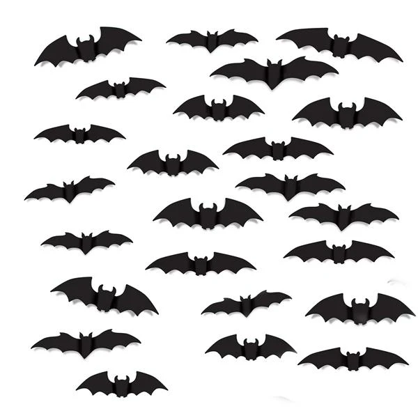 Add to your horror decorations our Bats Silhouette Cutouts. Each 20-pack of Bat Silhouette Cutouts contains a variety of sizes of cardboard bats from 10″ to 14″. Easily hang in windows, on ceilings, and doors for a spooky scene. Bats are printed on both sides. Use Sticky Tack for easy hanging. Sold in a pack of 20 bats. Please order in increments of 1 pack.