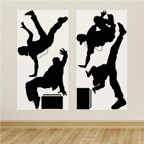 Decorate for 80’s Hip Hop parties with our awesome Break Dancer Decorations. Our black silhouette decorations come 6 pieces per pack and range in size from 13 3/4″ to 4′ 3 1/2″. These great looking dance decorations can be attached to walls with Sticky Tack, Items SUP010 or SUP017.