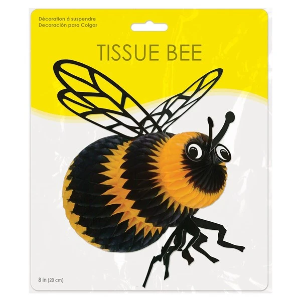 This cute little bumble bee does not buzz. Use our 8″ x 10″ Bumble Bee Decoration as a part of your party decor. Our bumble bee tissue decoration is sold by the piece. Please order in increments of 1 bee.