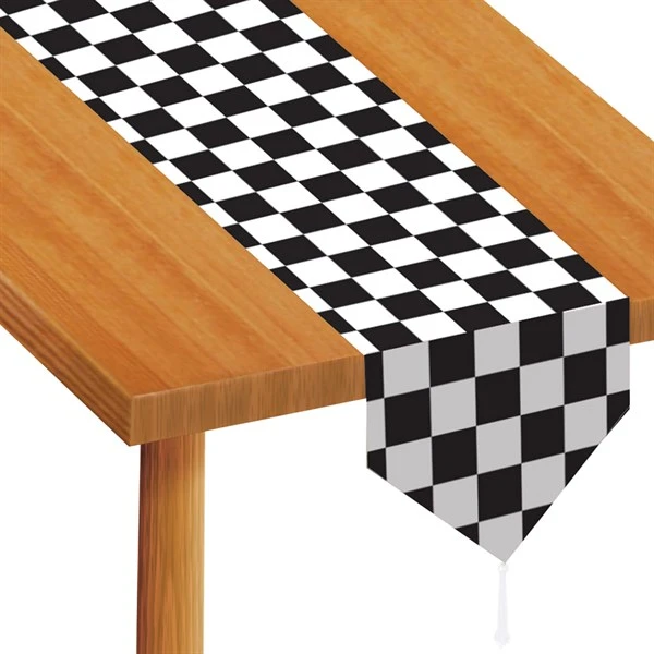 Our black & white Checkered Table Runner measures 72″ long by 11″ wide and is sold in a polybag of 1 piece. Please order in increments of 1 runner.