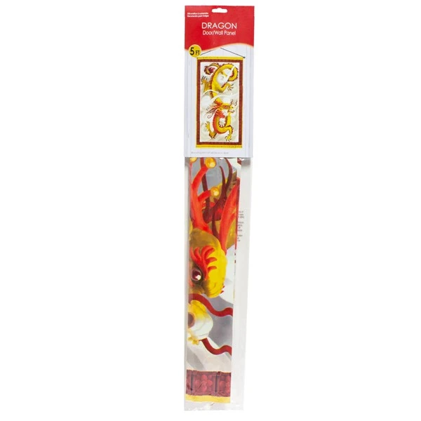 Hang this beautiful red and gold Chinese Dragon door door or wall panel as an addition to your Chinese New Year or Oriental theme party decorations. Each mylar door panel is 30″ wide by 5′ long and comes on a pole and cord for easy hanging. Our Chinese dragon wall hanging is sold by the piece. Please order in increments of 1 piece.