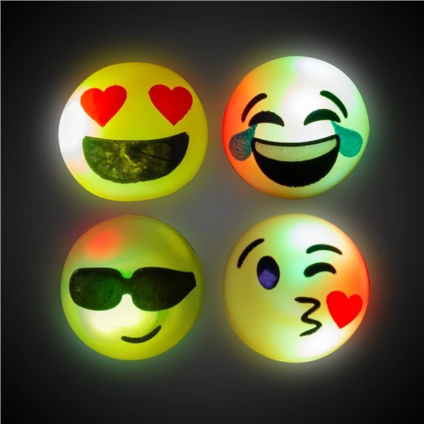 Our stretchy one-size-fits-all Emojicon Jelly Rings assortment has a light-up feature! Squeeze them to activate and watch the silly smiley face flash. Our light-up Emojicon Jelly Rings come in an attractive retail ready pack of 24 rings. Perfect for the pop culture and kid theme party favors and loot bags!
