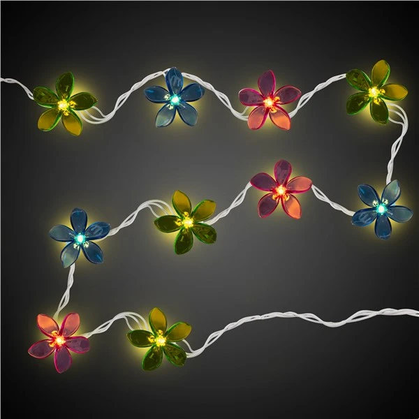 Our Flower String Lights is an 8 1/2′ long strand adorned with 10 assorted pink, blue, and green beautiful retro flowers. You can interconnect multiple light strands for a longer exposure. Flower lights are UL approved for indoor or outdoor use. Our flower lights are sold by the set. Please order in increments of 1 set. Perfect for decorating garden parties, Mother’s Day, Easter, ’60s Flower Power events, and birthday parties! Our Flower String Lights also make great gifts! Sold by the individual strand. Sold in a pack of 1 strand.