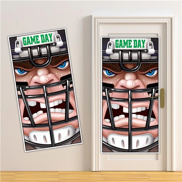 Get ready for some football when you invite your friends over for Game Day! Show them you are ready for the big game. Welcome guests with our plastic football door cover. This sporty illustrated plastic door cover makes a great addition to your football decorations. Our 30″ x 60″ door covers can be attached to walls with Sticky Tack, Items SUP010 or SUP017.