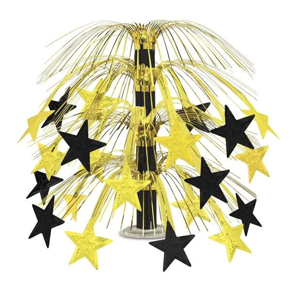 Stars are the perfect accent to your table for a Hollywood theme, New Year’s party, Graduation party or any time black and gold stars fit your theme. Our 18″ metallic black and gold star centerpiece is sold by the piece. Please order in increments of 1 piece.