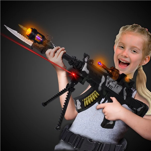 Make every playtime extraordinary with your kids with our 21″ LED Sniper Rifle. Get ready to fight and defend with these stylish designed LED Sniper Rifle that makes your kids feel like real soldiers. Aim at the target with these LED rifle measures 21″ long with straps included for carrying. Pull the trigger to illuminate the multicolor LED toy gun, light up the flashlight, and makes a shooting noise. Very impressive toy gun your kids will surely love to play with! Perfect for pretend play, school play, party decoration, and party prizes. 3 AA batteries are included, installed, and replaceable. Sold by the individual toy gun. Please order in increments of 1 gun.
