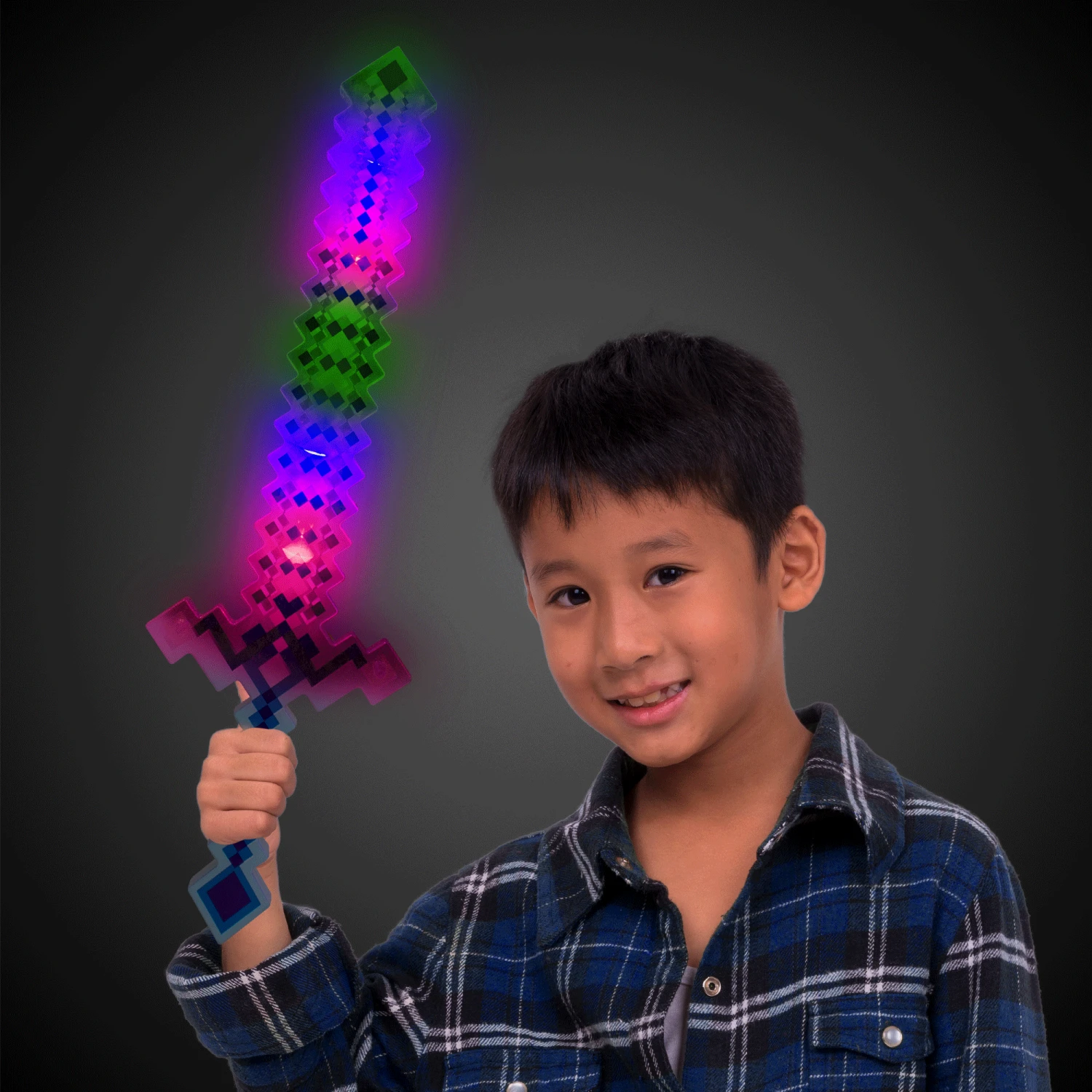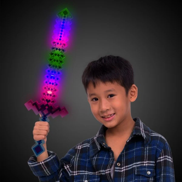 Defend your turf with our 19 1/2″ LED Blue Pixel Sword. This gaming sword is loved by kids of all ages. Catch their attention with LED lights. Ideal for gifts and party favors. Features 6 LED lights in 3 flashing light modes. Made from safe and durable materials made to last. 3 AAA batteries are included & installed. Sold by the individual sword. Please order in increments of 1 sword.