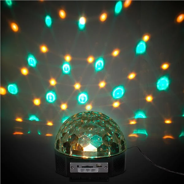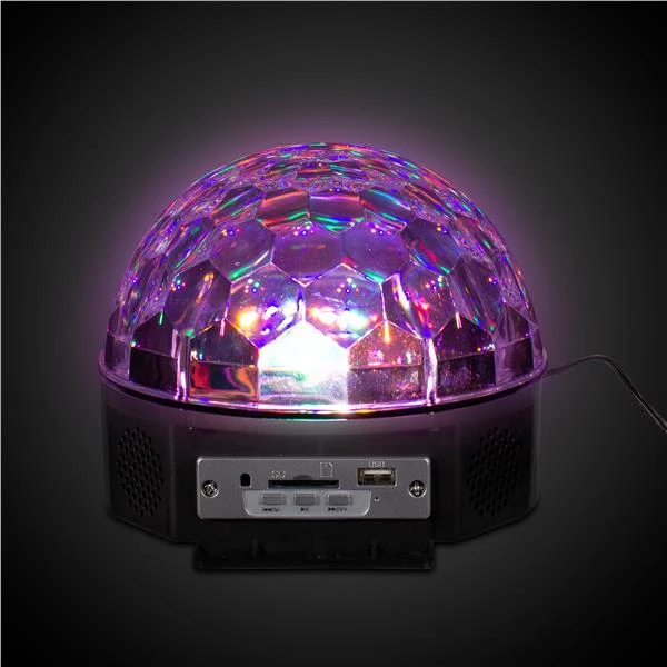 Our amazing LED DJ Lighting Effects Machine is a must-have for all kinds of dance parties and a great choice to add to your light up decorations for a fabulous nighttime effect. Each Magic Light Up Disco Ball Lamp features an array of fantastic features that can be controlled with the included remote. With the remote you can control the light’s speed, rotation, LED colors, sound-activated or gradual light modes, volume, on/off features and track selection. Each lamp is approximately 7″H x 8″W, comes with 1 AC110 – 220V cord to plug-in, is MP3 compatible, and also comes with its own USB flash disk. Play your own selection of tunes through its built-in speakers. Each LED DJ Lighting Effects Machine comes packed in a gift box and makes a great gift. Please order in increments of 1 machine.