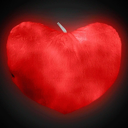 This soft, white LED Heart Pillow turns into a multi-color morphing light show when turned on. Our 15″W x 14″H 100% polyester pillow features a super soft white furry exterior that lights up in a slow morphing show of the colors of the rainbow with the press of the on/off button. LED Heart Pillows look great on beds, sofas, chairs and anywhere you want to add some love. There’s even a white looped ribbon at the top to hang this pillow as a furry decoration. LED Heart Pillows make a great gift or prize. Sold by the individual pillow. Please order in increments of 1 heart shaped pillow online ♥