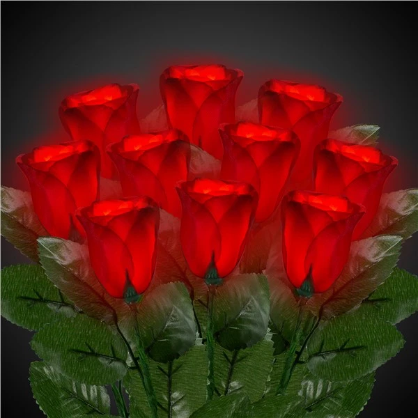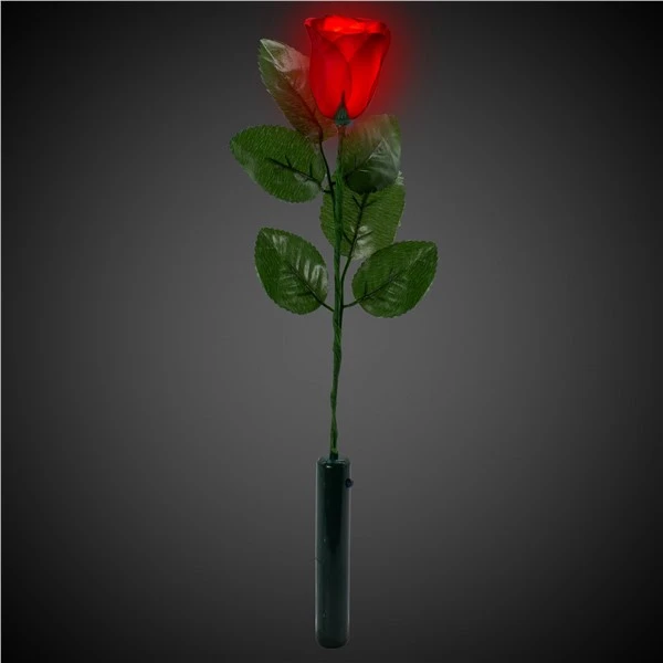 A rose is a rose, except our roses light up the night. Our 14″ LED Red Roses are a favorite for gifts and prizes. Each faux red rose has high-powered LEDs for a mesmerizing flashing effect and comes in a cellophane wrapper with a ribbon for a beautiful presentation. Light-up roses have AG13 batteries included, installed, and replaceable. Our bulk artificial red roses are sold in a 12 pack. Please order in increments of 1 pack.