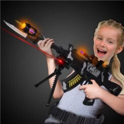 Our blue flashing LED Special Forces P90 Gun includes a strap and makes sounds! (3) AA batteries are included & installed. Each gun is 12 1/2″ long x 6 1/2: wide. Sold by the individual gun. Please order in increments of 1 gun.