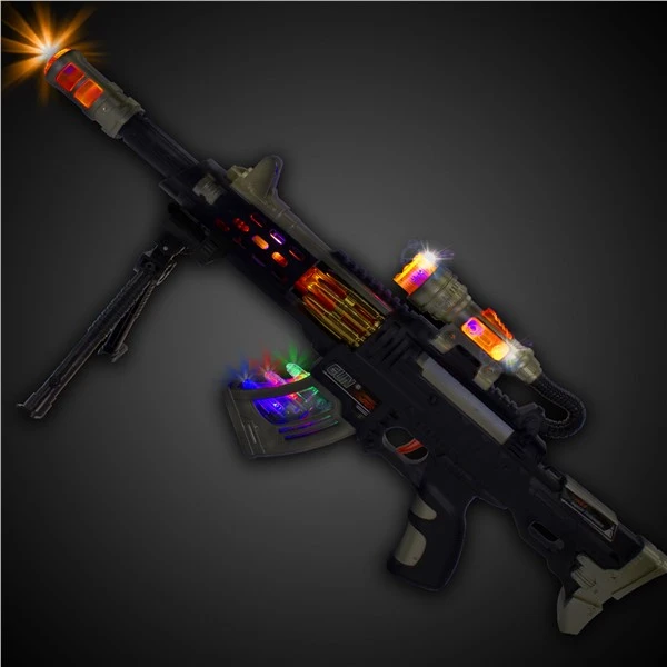 Make every playtime extraordinary with your kids with our 22″ LED Special Ops Rifle. Get ready to fight and defend with these stylish designed LED Sniper Rifle that makes your kids feel like real soldiers. Aim at the target with these LED rifles measures 22″ long with straps included for carrying. Pull the trigger to illuminate the multicolor LED toy gun, light up the flashlight, and makes a shooting noise. Very impressive toy gun your kids will surely love to play with! Perfect for pretend play, school play, party decoration, and party prizes. 3 AA batteries are included, installed, and replaceable. Sold by the individual rifle toy. Please order in increments of 1 rfile.