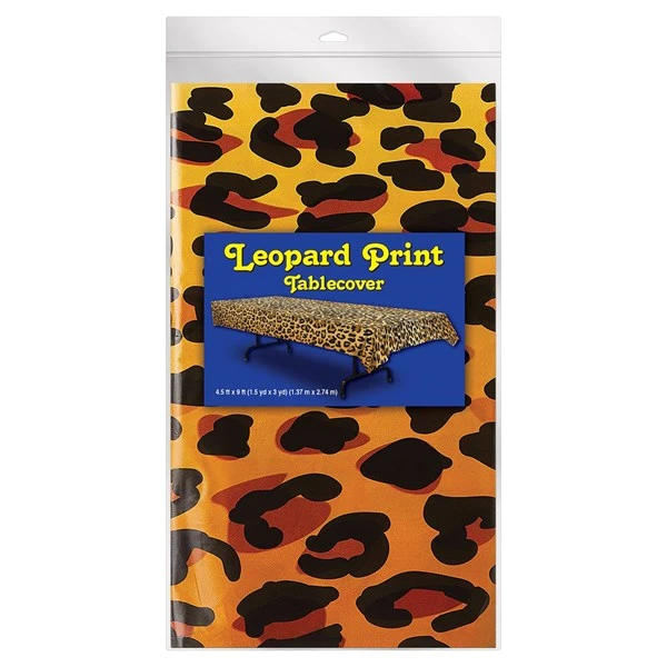Let your party tables go wild when you add our Leopard Print Table Cover to your tabletops. This 54″ x 108″ plastic animal print table cover is perfect for spicing up Safari or Jungle theme parties! Add plenty of pink for a great way to celebrate birthday parties or bachelorette parties for that wild woman in your life. Our leopard table cover is sure to add just enough pizzazz to your party plans. Pair our leopard print table cover with any bold color scheme you choose or mix it into a plethora of gorgeous forest greens and other animal prints fit for the king or queen of the jungle. Sold by the individual table cover. Please order in increments of 1 table cover.Â
