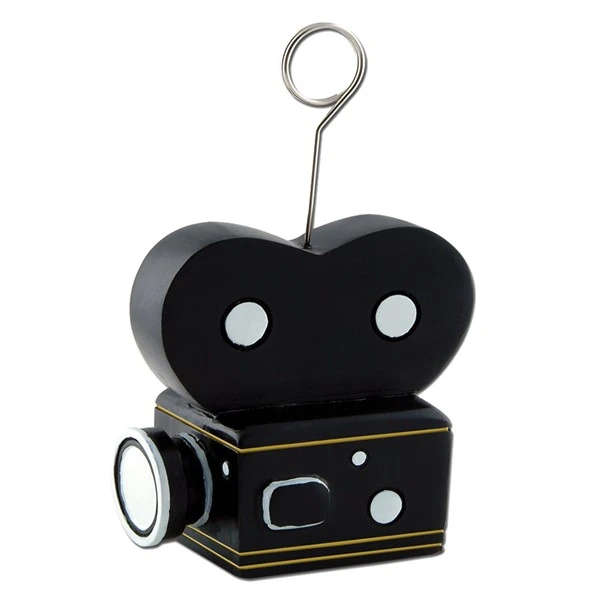 Lights! Camera! Action! Use our Movie Camera Balloon Weight as a part of your Hollywood or awards night centerpiece. Each 3″ movie camera balloon weight can also be used to hold a photograph, place card, and table number and will be a part of your movie night table decorations. Our movie camera balloon weight is sold by the piece. This Movie Camera Balloon Weight weighs 7.7 oz. Please order in increments of 1 piece.