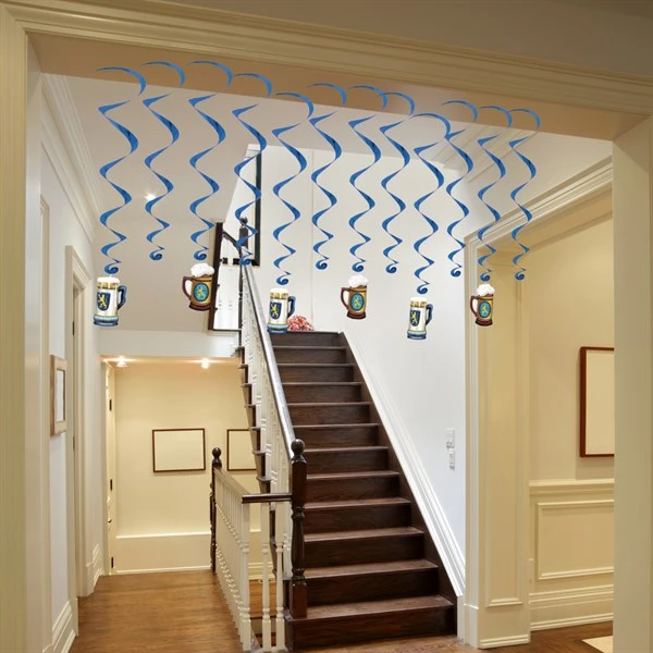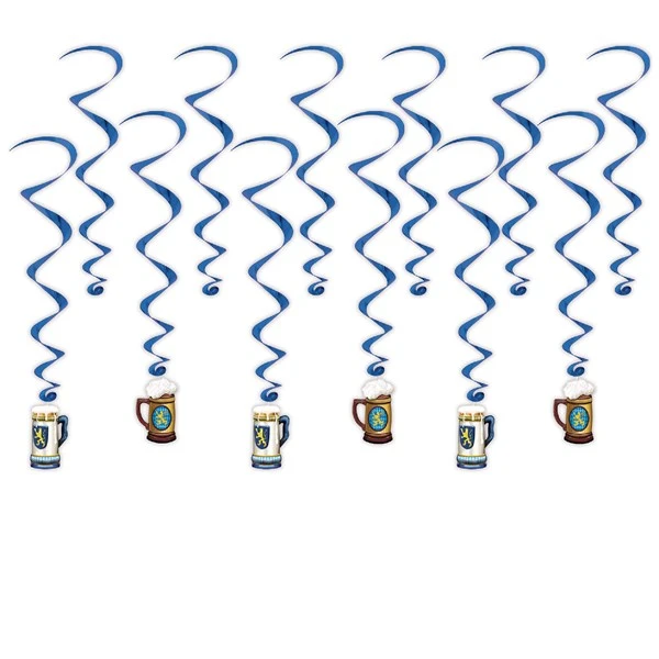 Decorate for your Bavarian beer celebration with our 12-pack of Oktoberfest hanging beer stein party decorations. Ranging in size from 17 1/2″ to 33 3/4″ long, these dangling decorations are great for over bars & tables. Mix & match all of our Oktoberfest traditional decorations and celebrate this favorite time of the year. Our Oktoberfest hanging whirls are sold 12 in a pack. Please order in increments of 1 pack.