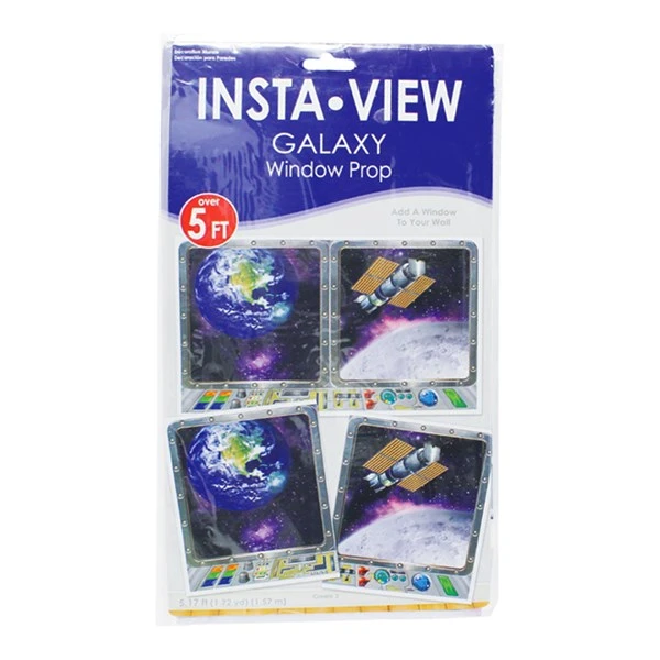 Look out into outer space with our plastic Outer Space scene setter add on. Our Outer Space instant view is 38″ x 62″ and is sold by the piece. Creates a unique space ship view for Martian parties! Please order in increments of 1 piece. Easily attach all decoration with Sticky Tack, item SUP017.
