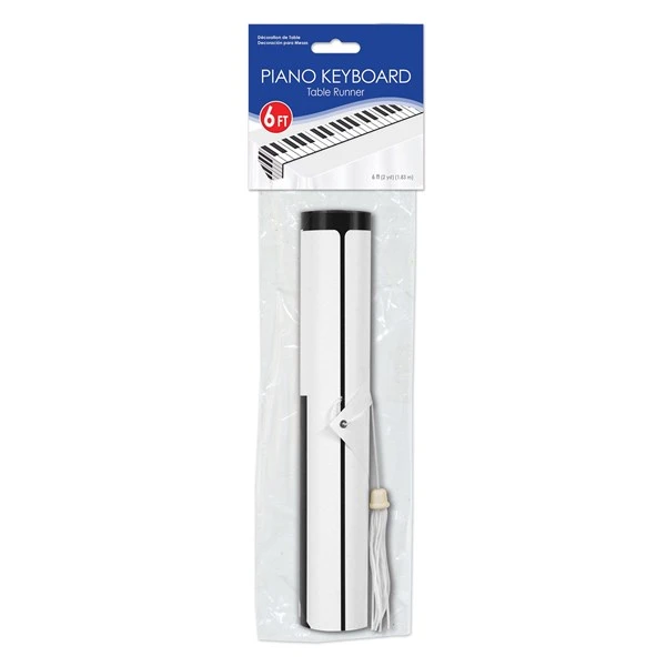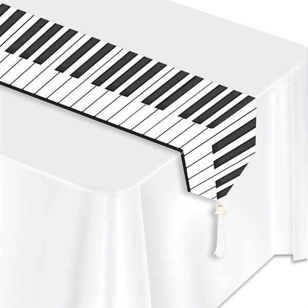 You can almost hear the Ivories playing when you decorate tables with a musical theme. Use this 11″W x 72″L table runner to dress up your party & cocktail tables and bar. Each keyboard table runner is made of a glossy paper stock accented with tassels on each end. Our Piano Keyboard Table Runner is sold by the piece. Please order in increments of 1 runner.