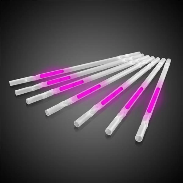 Simply crack and shake to activate our Pink Glow Motion Straws. With every sip watch the built-in glow stick move up and down! This glow straw is super fun but not meant for thick drinks like frozen cocktails and milkshakes. Each glowing straw is 9″ and each pack comes with 25 pink glow straws.