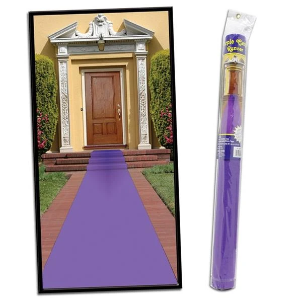 Walk this way! Turn your path into a pathway worthy of a royal visit when you add our 24″ x 15′ Purple Carpet Runner. This bold purple floor decoration is a must-have for Mardi Gras parties or any time purple is your party’s color scheme. Our Purple Carpet Floor Runner is perfect for proms, too! Easily stick to floors using the included double stick tape indoors or out. Anytime the color purple fits your party’s theme you can use this great-looking purple runner to create a fantastic-looking photo op for your partygoers. Sold by the individual runner. Please order in increments of 1 runner.