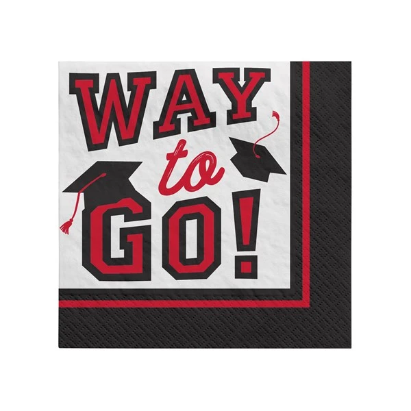 Way to go, grad! If red is your school color, celebrate this milestone with our Red Graduation Beverage Napkins. Sold in a pack of 40 napkins. Please order in increments of 1 pack.