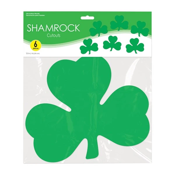Our 12″ double-sided Shamrock Cutouts are perfect to decorate windows, doors and walls for your Luck of the Irish events.. Sold in a pack of 6 cutouts. Please order in increments of 1 pack.