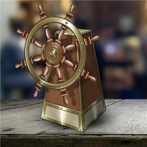 Set the scene for a Nautical adventure with our Wooden ship-style Helm Centerpiece. Each 3D centerpiece is perfect for pirate & nautical-theme parties! Hit the high seas with our 3D jointed Ship Helm Centerpiece. Some easy assembly is required. Made out of lightweight cardboard.