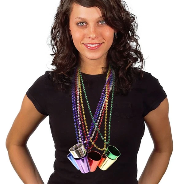 Our TOY shot glass comes on 33″ 7.5mm matching metallic beads. Shot glass necklaces are packed 12 assorted to a pack. Please order metallic bead necklaces in bulk increments of 1 pack. PLEASE NOTE: These toy shot glasses are for decoration and novelty use only. They are NOT designed to be used with actual liquids.