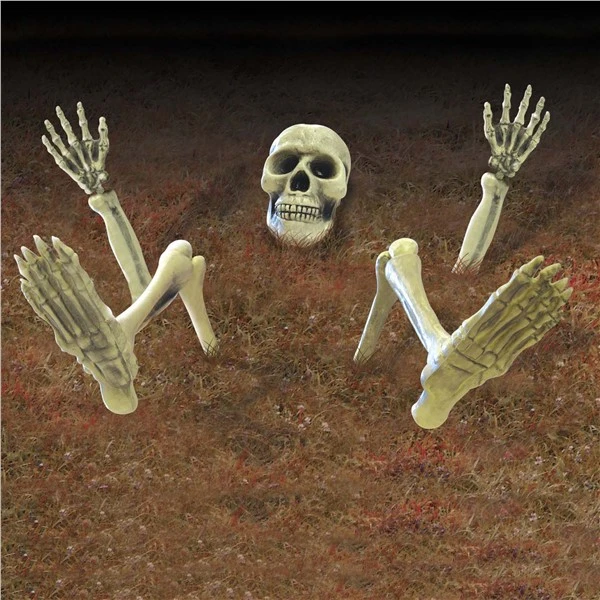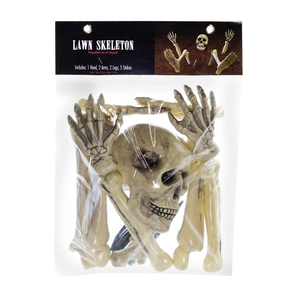 Greet trick-or-treaters or patrons with our Halloween yard skeleton groundbreaker, featuring 29″ long legs, 15″ long arms, and a 6″ x 4 1/2″ skull. Perfect to add flair to entranceways to set the tone for a spooky Halloween party. Sold 5 pieces to the bag, bury this skeleton in your yard. Please order in increments of 1 pack.Â