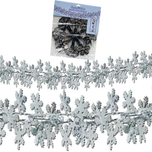 Create your own winter wonderland for a beautiful holiday party. Our 9′ long fabulous snowflake garland can be used as a garland around poles, doorways or walls or hang as a column. This beautiful snowflake garland also can be used as a beautiful runner on your holiday table. The 9′ long by 12″ wide snowflake garland is sold by the piece. Please order in increments of 1 piece.