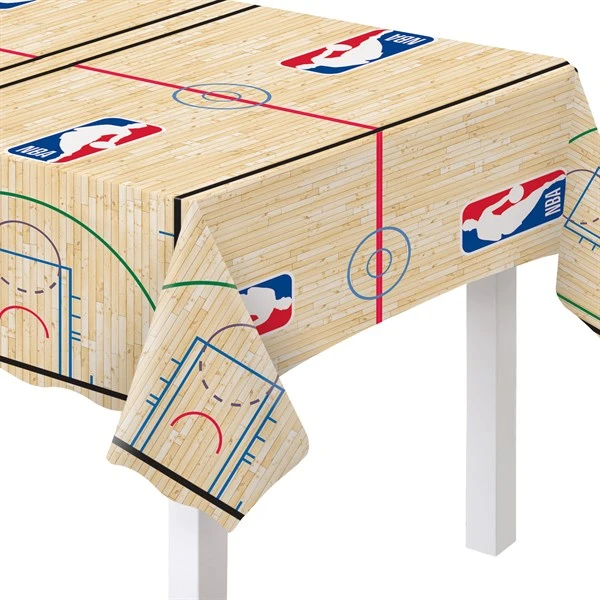 It’s a basketball party theme and if you are a high school team fan, NCAA® college fan, or an NBA® fan, our plastic licensed Wilson® Basketball Table Cover is the perfect choice for a basketball theme party. Get ready for March Madness® and the NBA playoffs with this great basketball tableware pattern. Mix & match with our basketball theme party supplies, NBA team items, and school colors for a great setting. Our plastic basketball-themed table cover measures 54″ x 96″ and is sold by the individual table cover. Please order in increments of 1 table cover.