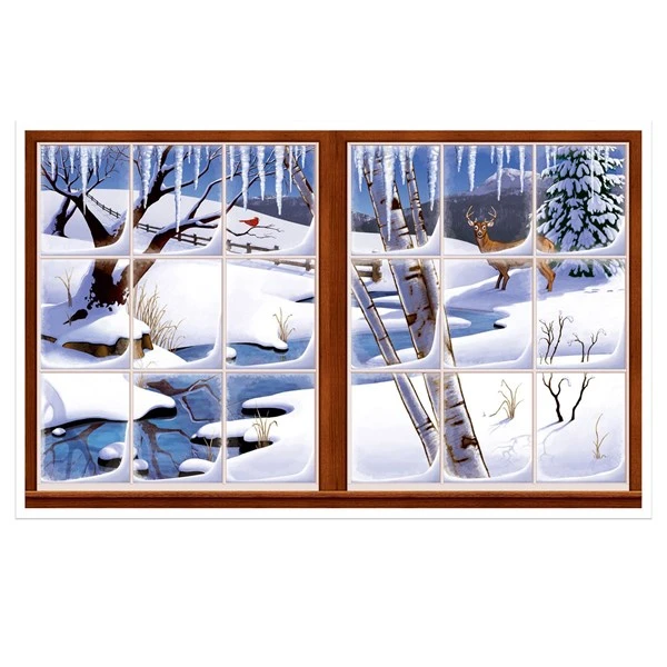 Set the scene for a winter wonderland theme holiday party. Add to your holiday party decorations our plastic winter wonderland instant theme decoration. Hang on walls or windows to change the scene at your Christmas party. Each winter wonderland instant view is 30″ high by 62″ long and is sold by the piece. Please order in increments of 1 piece.